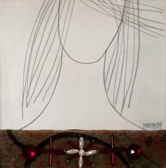originální kresba - rytý papír, kombinovaná technika, ruční výšivka na sametu