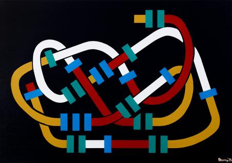 Dominantní královská námořnická modrá – oblíbená barva umělce – symbolizuje jak sílu, tak tradici. Národní vlajky jsou další z umělcovo vášní a tento obraz je poctou této fascinaci.