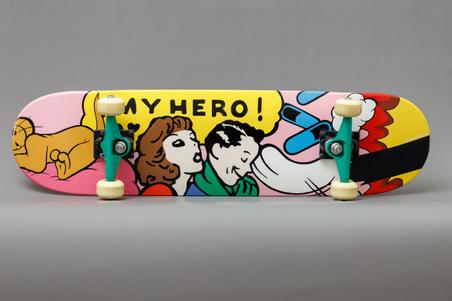 The skateboard transformed by Pasta Oner into an artistic object represents a rare and highly attractive opportunity for collectors on the market. Pasta Oner ranks among the most prominent figures of the contemporary Czech art scene. He entered the wider public consciousness with his unique painterly expression, built on irony, pop art, comic aesthetics, and street art. His distinctive style has earned the respect of collectors and critics both at home and abroad. He often works with contrasts – combining realistic depiction with poster-like stylization, while classical pop art themes such as symbols of consumerism, wealth, luxury brands, or superficial beauty are placed into a contemporary context. His practice extends beyond painting to include spatial objects and sculptures, which form an integral part of his oeuvre. The vividly colored comic scene on the skateboard evokes both playfulness and tension, and with a humorous undertone recalls the endless chases of Tom and Jerry – an allegory of perpetual rivalry that never ends.