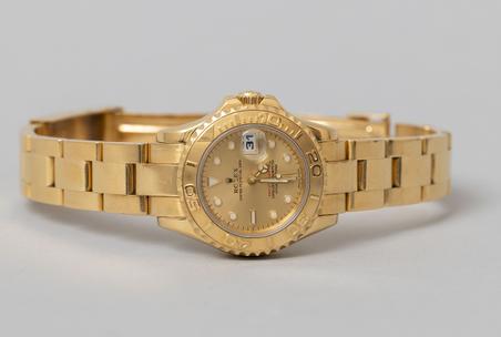 The Yacht-Master model with reference number 69628 is an exclusive ladies’ watch from the 1990s. Its 29 mm case and Oyster bracelet in solid 18k yellow gold emphasize the model’s refined and elegant character. At its heart beats the automatic Rolex Caliber 2135 with COSC chronometer certification. The rotating bezel, screw-down Triplock crown, and sapphire crystal provide durability and water resistance to 100 meters. The luminous dial ensures perfect legibility in every situation. The Yacht-Master is a symbol of Rolex’s sporty luxury and an elegant jewel that radiates prestige and timeless style on the wrist.